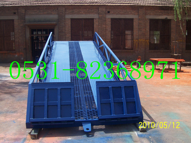 移動式液壓裝卸過橋廣泛用于無裝卸設(shè)備的貨臺及流動裝卸場所,是與叉車配合使用的貨物裝卸輔助設(shè)備。借助該設(shè)備,叉車能直接駛?cè)肫嚰b箱內(nèi)部進(jìn)行批量裝卸作業(yè)。只需單人操作,不需動力電源。實現(xiàn)貨物的安全快速裝卸,既可減輕勞動速度,又能成倍提高裝卸作業(yè)效率,加快物料流通速度,獲取更大經(jīng)濟(jì)效益。